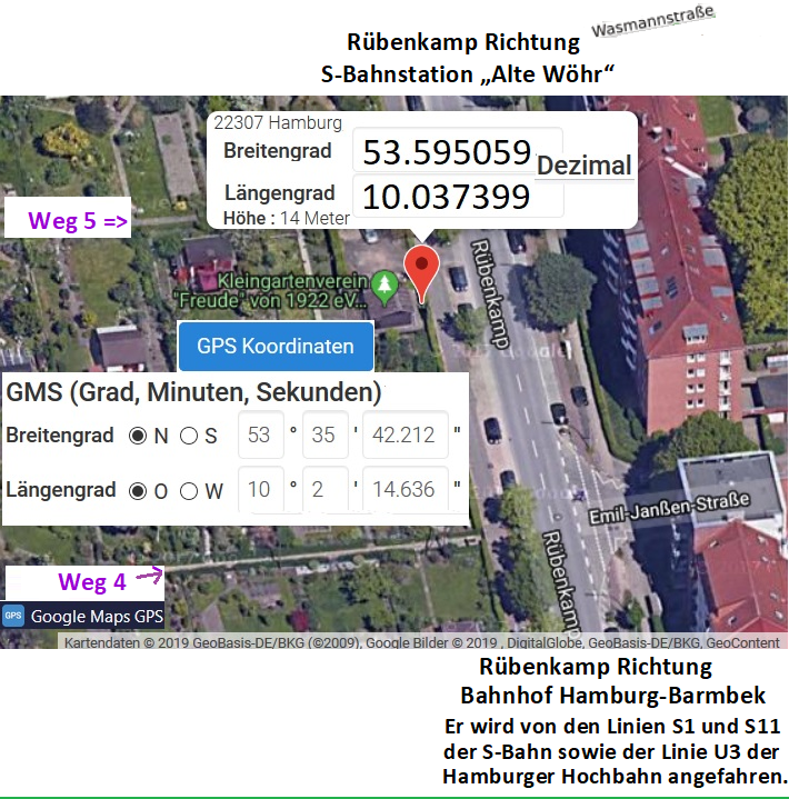 Anfahrt / Lage Unser Vereinshaus befindet sich in 22307 Hamburg - Barmbek bei den nachfolgend angegebenen GPS-Koordinaten! Vergrößern des Bildes ist durch "anklicken" möglich!
